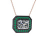 Beyaz zirkon ve kök zümrüt 925 ayar siyah rodyum kaplama gümüş kolye (40 cm rose altın rolo zincir)