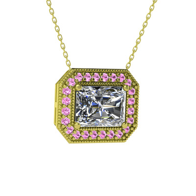 Beyaz zirkon ve pembe kuvars 925 ayar altın kaplama gümüş kolye (40 cm gümüş rolo zincir)