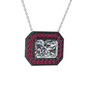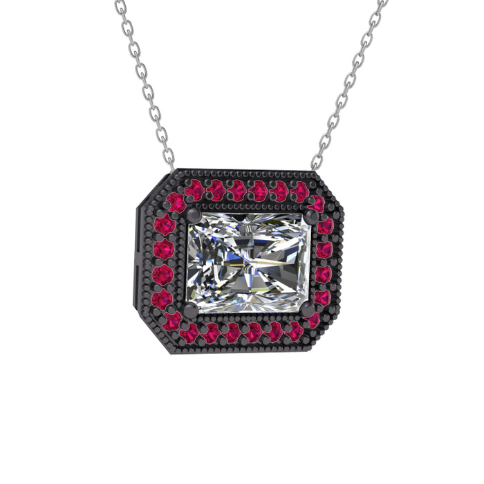 Beyaz zirkon ve rodolit garnet 925 ayar siyah rodyum kaplama gümüş kolye (40 cm beyaz altın rolo zincir)