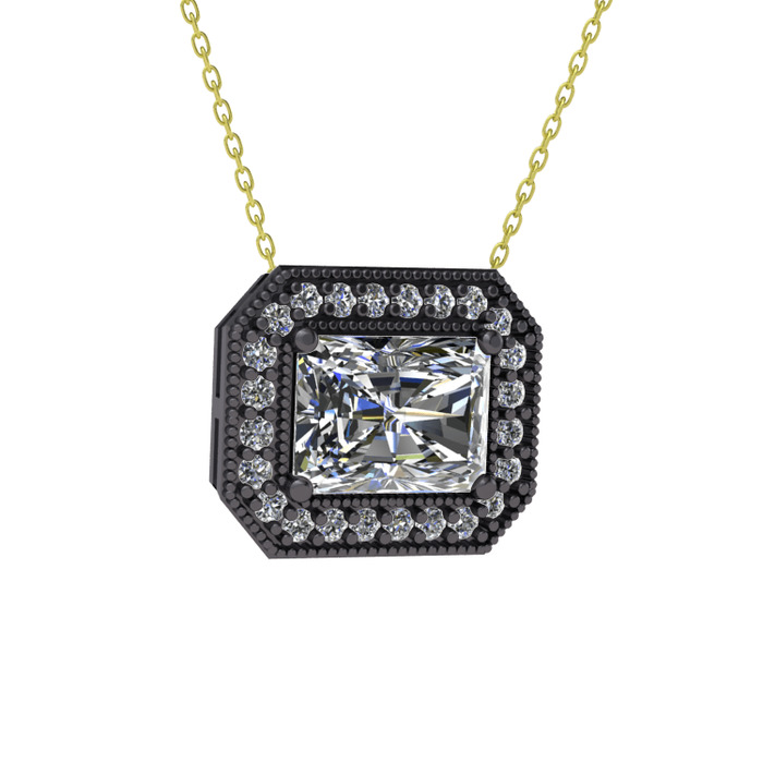 Beyaz zirkon 925 ayar siyah rodyum kaplama gümüş kolye (40 cm altın rolo zincir)