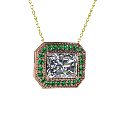 Beyaz zirkon ve yeşil kuvars 925 ayar rose altın kaplama gümüş kolye (40 cm altın rolo zincir)