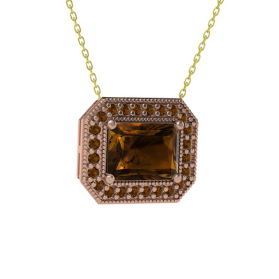Dumanlı kuvars 14 ayar rose altın kolye (40 cm altın rolo zincir)