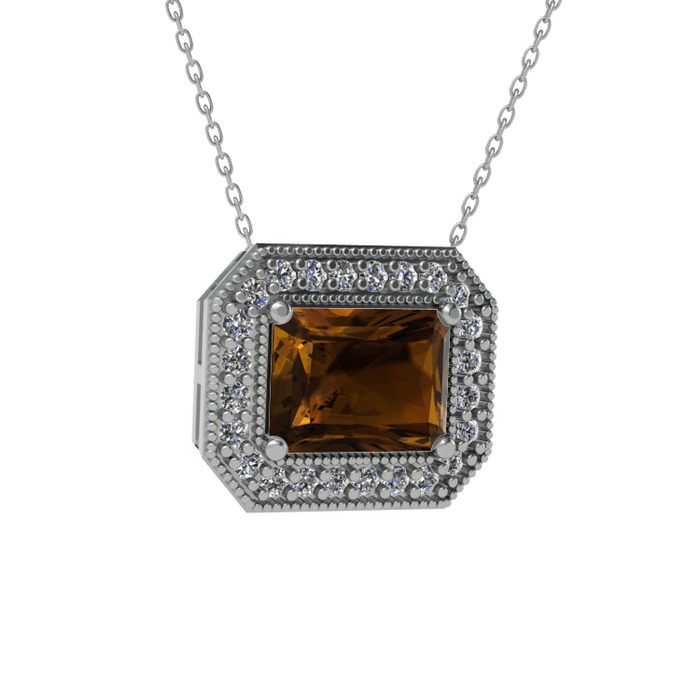 Dumanlı kuvars ve beyaz zirkon 14 ayar beyaz altın kolye (40 cm gümüş rolo zincir)