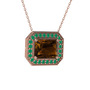 Dumanlı kuvars ve kök zümrüt 925 ayar rose altın kaplama gümüş kolye (40 cm rose altın rolo zincir)