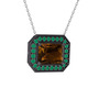 Dumanlı kuvars ve kök zümrüt 925 ayar siyah rodyum kaplama gümüş kolye (40 cm gümüş rolo zincir)