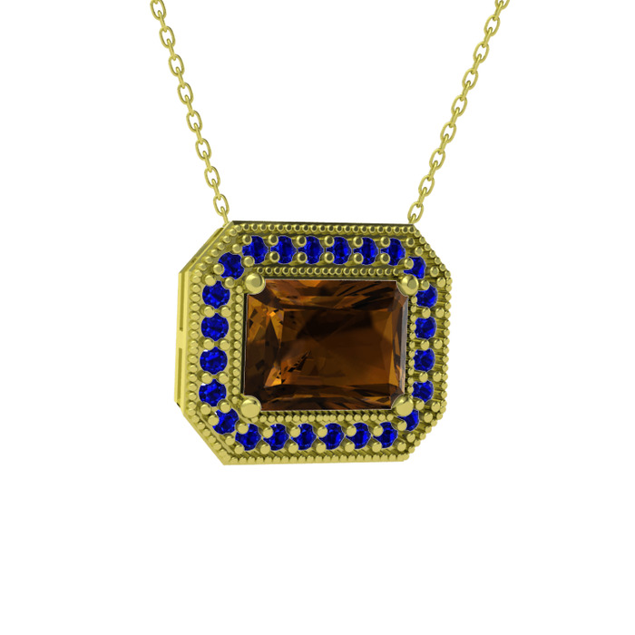 Dumanlı kuvars ve lab safir 8 ayar altın kolye (40 cm gümüş rolo zincir)