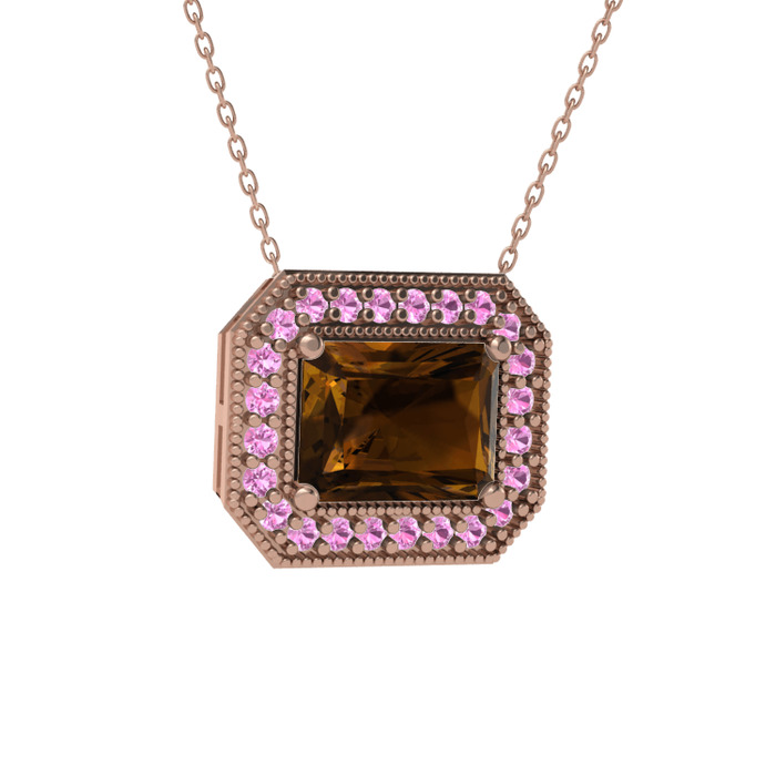 Dumanlı kuvars ve pembe kuvars 8 ayar rose altın kolye (40 cm rose altın rolo zincir)