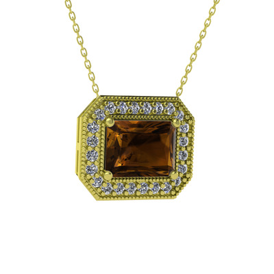 Dumanlı kuvars ve pırlanta 18 ayar altın kolye (0.253 karat, 40 cm altın rolo zincir)