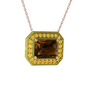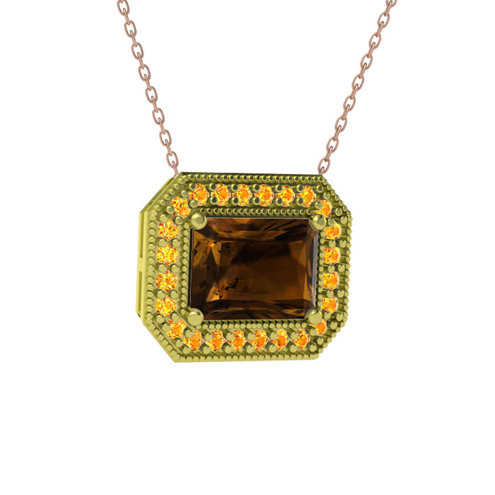 Dumanlı kuvars ve sitrin 14 ayar altın kolye (40 cm rose altın rolo zincir)
