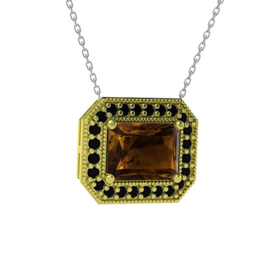 Dumanlı kuvars ve siyah zirkon 925 ayar altın kaplama gümüş kolye (40 cm gümüş rolo zincir)