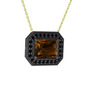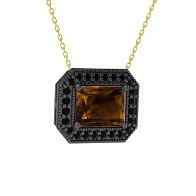 Dumanlı kuvars ve siyah zirkon 925 ayar siyah rodyum kaplama gümüş kolye (40 cm altın rolo zincir)