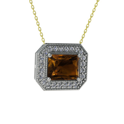 Dumanlı kuvars ve swarovski 925 ayar gümüş kolye (40 cm altın rolo zincir)