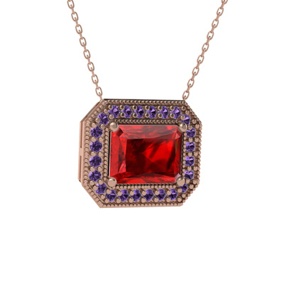 Garnet ve ametist 925 ayar rose altın kaplama gümüş kolye (40 cm gümüş rolo zincir)