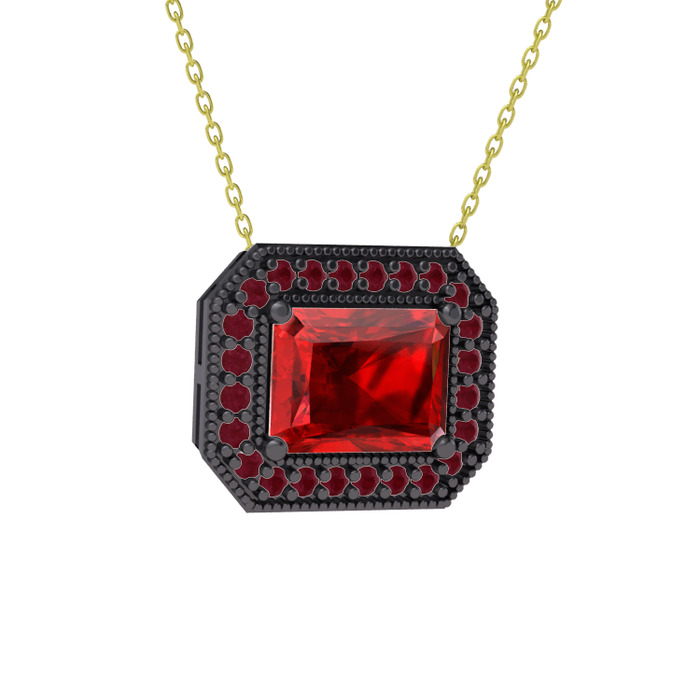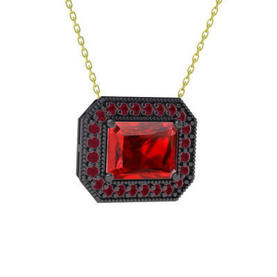 Garnet ve kök yakut 925 ayar siyah rodyum kaplama gümüş kolye (40 cm altın rolo zincir)