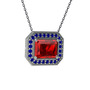 Garnet ve lab safir 8 ayar beyaz altın kolye (40 cm gümüş rolo zincir)