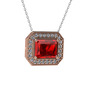 Garnet ve pırlanta 14 ayar rose altın kolye (0.253 karat, 40 cm beyaz altın rolo zincir)
