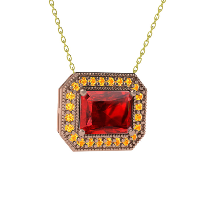 Garnet ve sitrin 8 ayar rose altın kolye (40 cm altın rolo zincir)