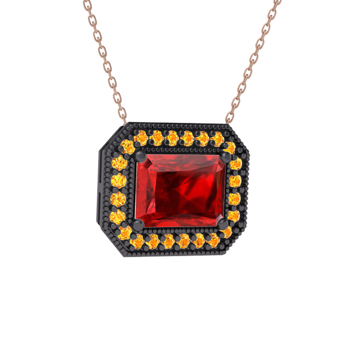 Garnet ve sitrin 925 ayar siyah rodyum kaplama gümüş kolye (40 cm rose altın rolo zincir)