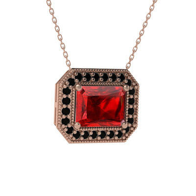 Garnet ve siyah zirkon 8 ayar rose altın kolye (40 cm rose altın rolo zincir)