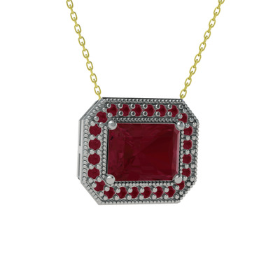 Kök yakut 18 ayar beyaz altın kolye (40 cm altın rolo zincir)