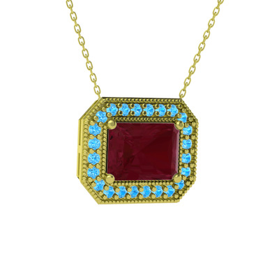 Kök yakut ve akuamarin 18 ayar altın kolye (40 cm altın rolo zincir)
