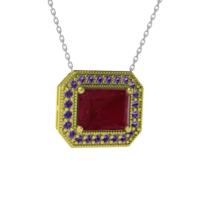 Kök yakut ve ametist 925 ayar altın kaplama gümüş kolye (40 cm gümüş rolo zincir)