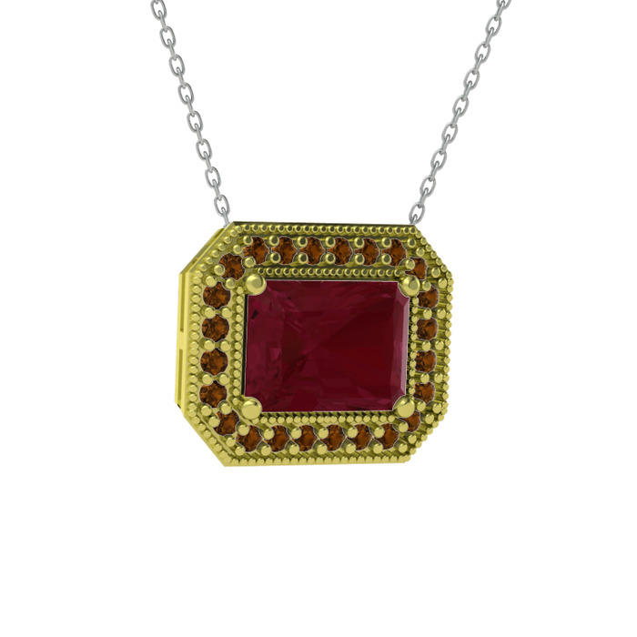 Kök yakut ve dumanlı kuvars 8 ayar altın kolye (40 cm gümüş rolo zincir)