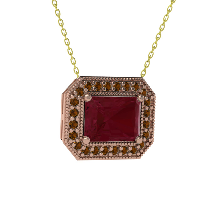 Kök yakut ve dumanlı kuvars 8 ayar rose altın kolye (40 cm altın rolo zincir)