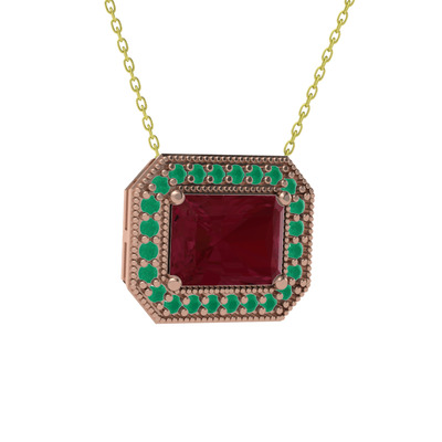 Kök yakut ve kök zümrüt 14 ayar rose altın kolye (40 cm gümüş rolo zincir)