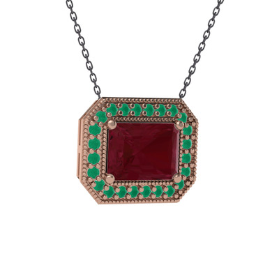 Kök yakut ve kök zümrüt 18 ayar rose altın kolye (40 cm gümüş rolo zincir)