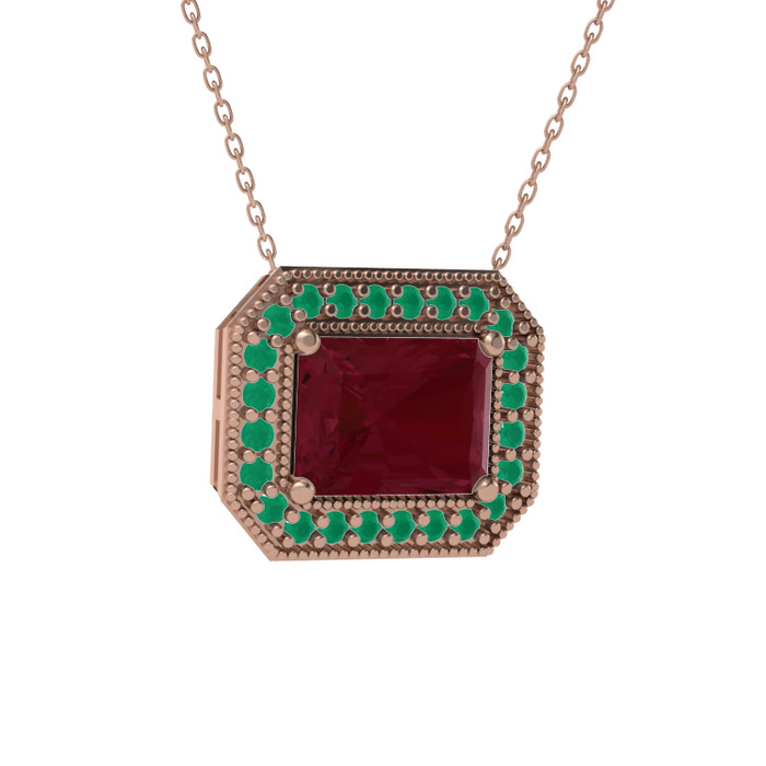 Kök yakut ve kök zümrüt 18 ayar rose altın kolye (40 cm gümüş rolo zincir)