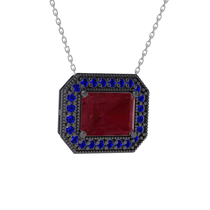 Kök yakut ve lab safir 925 ayar siyah rodyum kaplama gümüş kolye (40 cm gümüş rolo zincir)