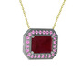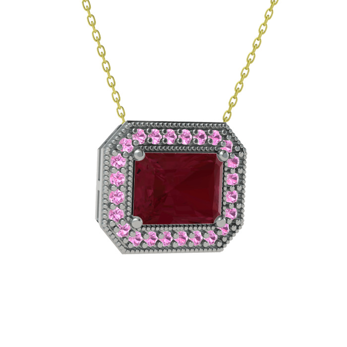 Kök yakut ve pembe kuvars 14 ayar beyaz altın kolye (40 cm gümüş rolo zincir)