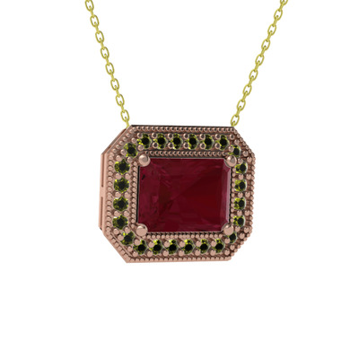 Kök yakut ve peridot 18 ayar rose altın kolye (40 cm gümüş rolo zincir)