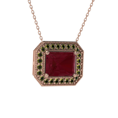 Kök yakut ve peridot 18 ayar rose altın kolye (40 cm gümüş rolo zincir)