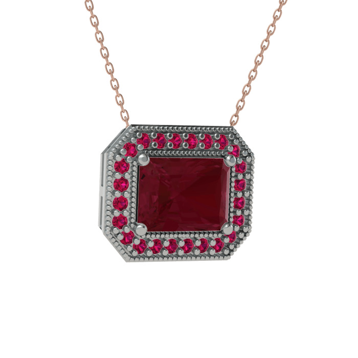 Kök yakut ve rodolit garnet 925 ayar gümüş kolye (40 cm rose altın rolo zincir)