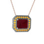 Kök yakut ve sitrin 925 ayar gümüş kolye (40 cm rose altın rolo zincir)