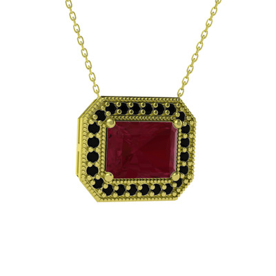 Kök yakut ve siyah zirkon 18 ayar altın kolye (40 cm altın rolo zincir)