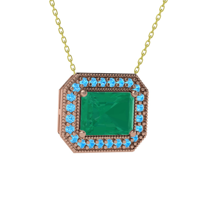 Kök zümrüt ve akuamarin 8 ayar rose altın kolye (40 cm altın rolo zincir)
