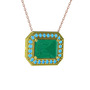 Kök zümrüt ve akuamarin 925 ayar altın kaplama gümüş kolye (40 cm rose altın rolo zincir)