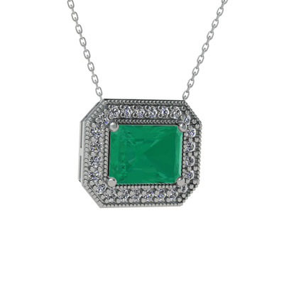Kök zümrüt ve beyaz zirkon 14 ayar beyaz altın kolye (40 cm beyaz altın rolo zincir)