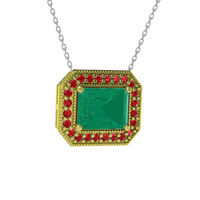 Kök zümrüt ve garnet 925 ayar altın kaplama gümüş kolye (40 cm beyaz altın rolo zincir)