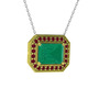 Kök zümrüt ve kök yakut 14 ayar altın kolye (40 cm beyaz altın rolo zincir)