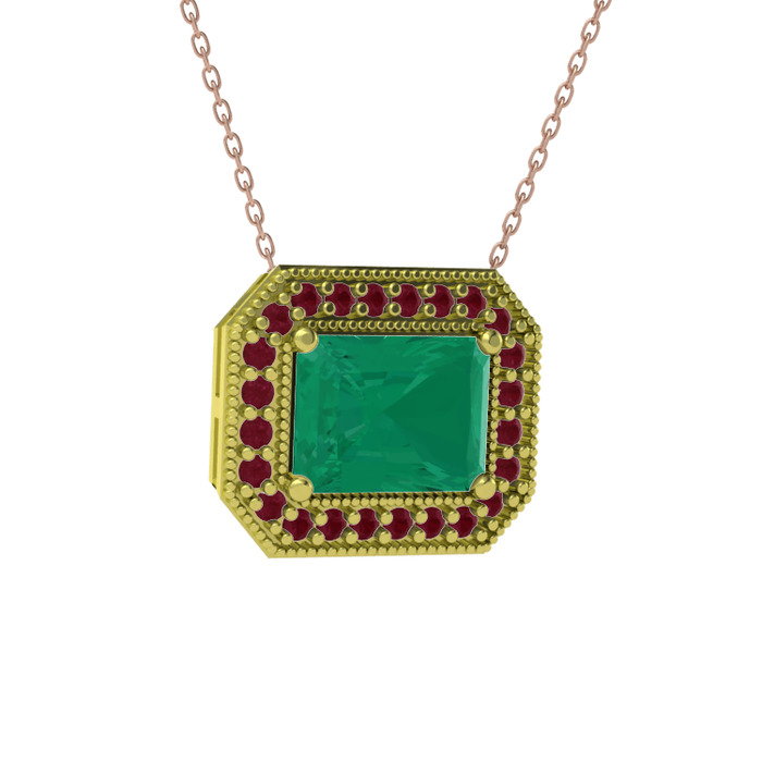 Kök zümrüt ve kök yakut 925 ayar altın kaplama gümüş kolye (40 cm rose altın rolo zincir)