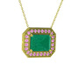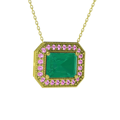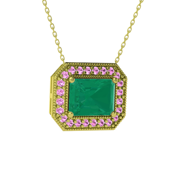 Kök zümrüt ve pembe kuvars 8 ayar altın kolye (40 cm altın rolo zincir)