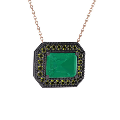 Kök zümrüt ve peridot 925 ayar siyah rodyum kaplama gümüş kolye (40 cm rose altın rolo zincir)