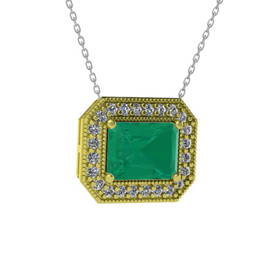 Kök zümrüt ve pırlanta 14 ayar altın kolye (0.253 karat, 40 cm beyaz altın rolo zincir)