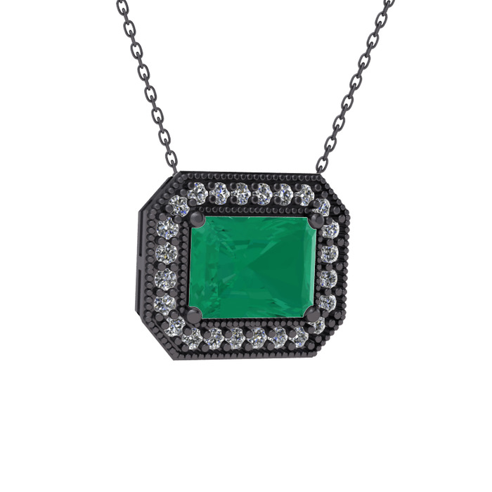 Kök zümrüt ve pırlanta 925 ayar siyah rodyum kaplama gümüş kolye (0.253 karat, 40 cm gümüş rolo zincir)