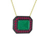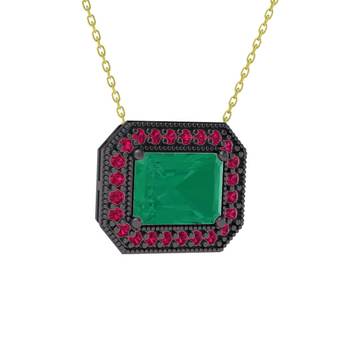 Kök zümrüt ve rodolit garnet 925 ayar siyah rodyum kaplama gümüş kolye (40 cm altın rolo zincir)