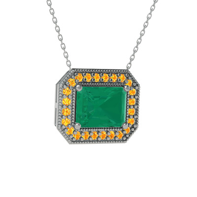 Kök zümrüt ve sitrin 18 ayar beyaz altın kolye (40 cm beyaz altın rolo zincir)